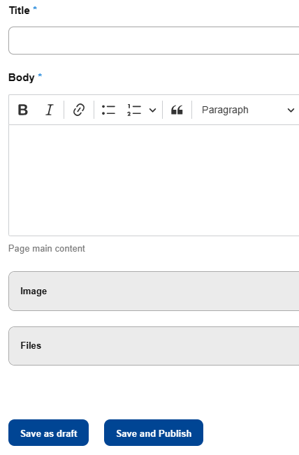 - You can draft your post, attach images and files, and choose to "Save as draft" to preview it or "Save and Publish" to post it directly.