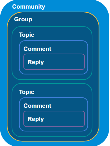 The community is organized hierarchically to keep discussions structured and easy to navigate: